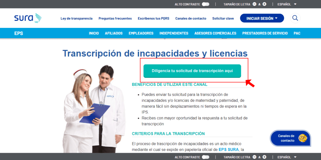 Se desplegará un menú pequeño y en este caso debes seleccionar transcribir incapacidad. Si te preguntas “cómo verificar una incapacidad en Sura”, aquí te explicamos. En el caso de que no lo hayas hecho, mira lo que te contaremos en el siguiente párrafo.