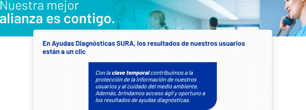 Información de clave temporal para solicitar resultados examenes Sura.